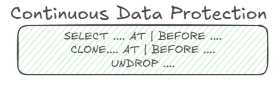 Access historical data, restore information, and ensure data integrity. Time Travel, UNDROP, Zero Copy Cloning, and Fail-safe.